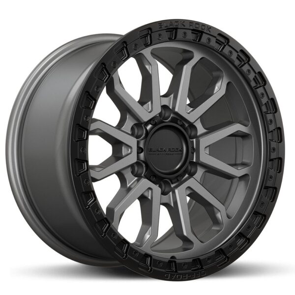 BLACK ROCK COBRA SATIN BLACK GUNMETAL GREY RING 17X9